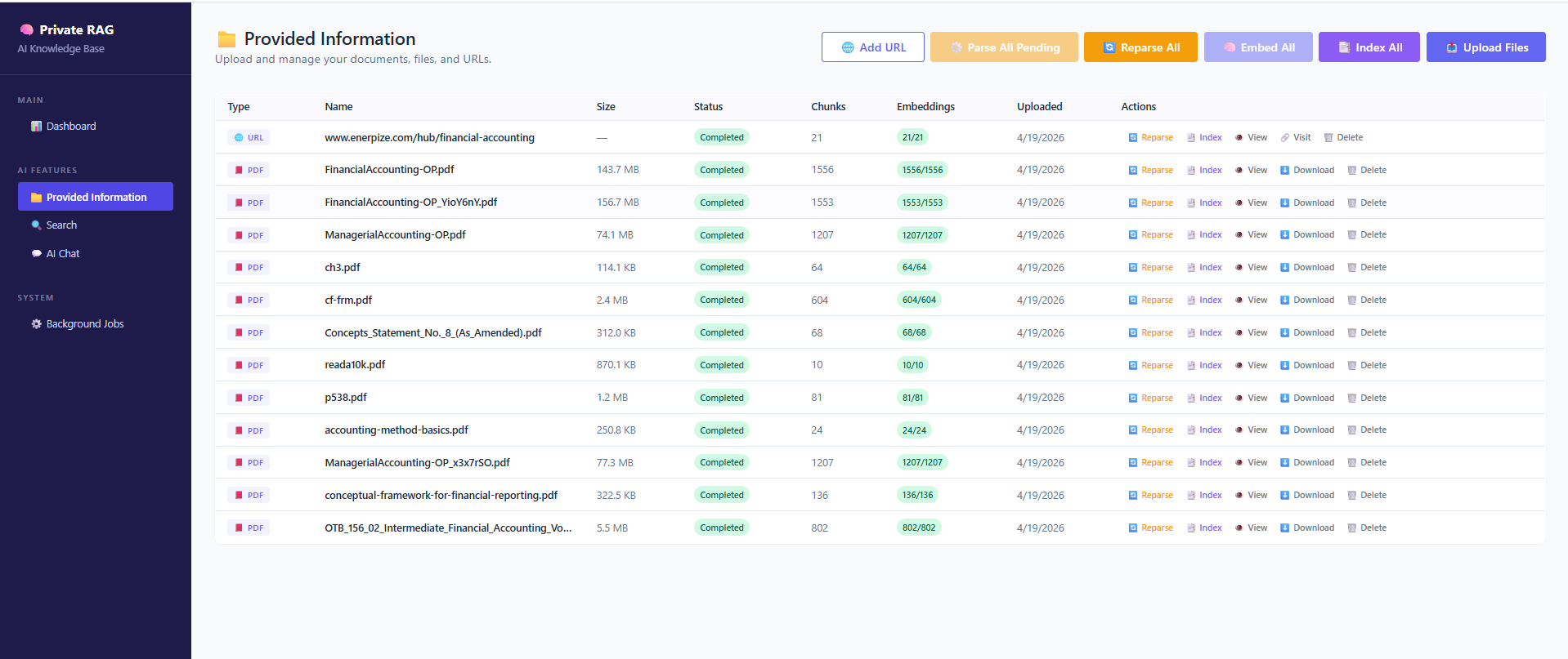 At a practical level, every source is parsed, broken down into manageable chunks, transformed into embeddings, and indexed for fast and accurate retrieval. Each item remains traceable and available for querying in real time.